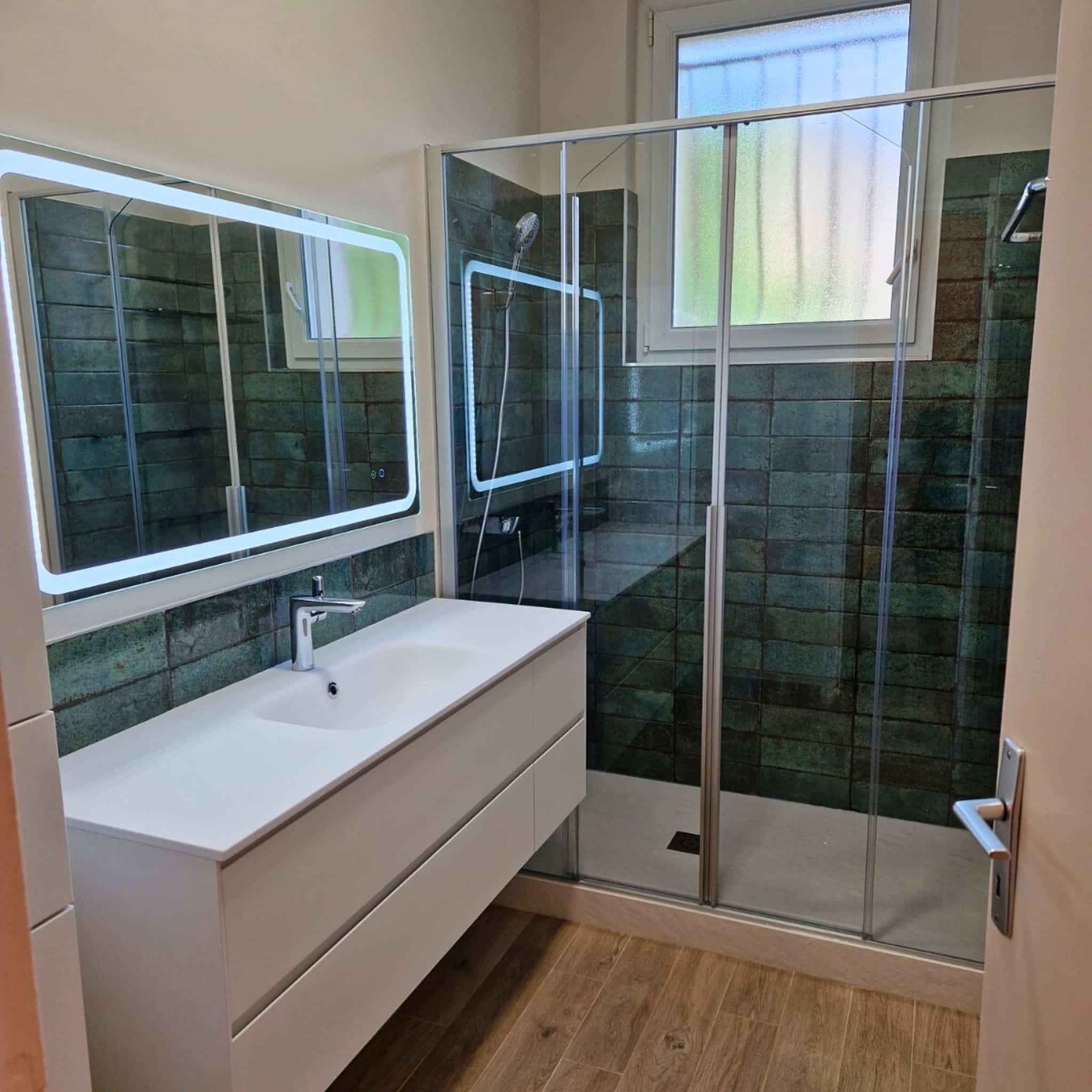 Coordination de tous les corps de métier : plomberie, électricité, carrelage, peinture. Installation clé-en-main avec nos artisans partenaires qualifiés pour un projet sans stress.